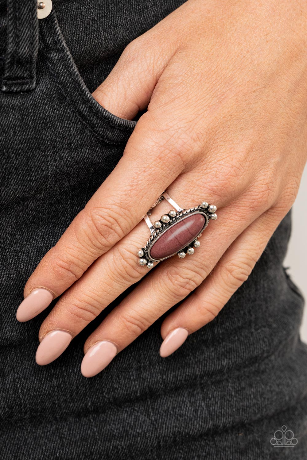 An earthy oval Fired Brick stone nestles inside a studded silver frame, creating an authentically artisan look atop the finger. Features a stretchy band for a flexible fit.