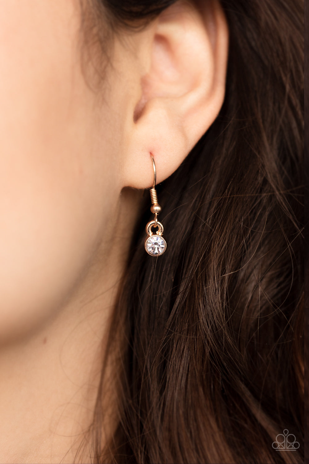 A dramatically oversized white gem is pressed into the center of a curvy gold frame dusted in dainty white rhinestones, creating a glamorous pendant at the bottom of a lengthened gold chain. Features an adjustable clasp closure.