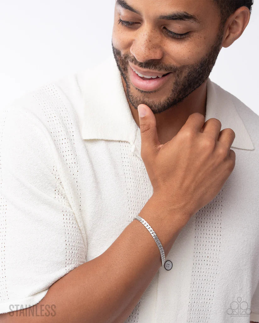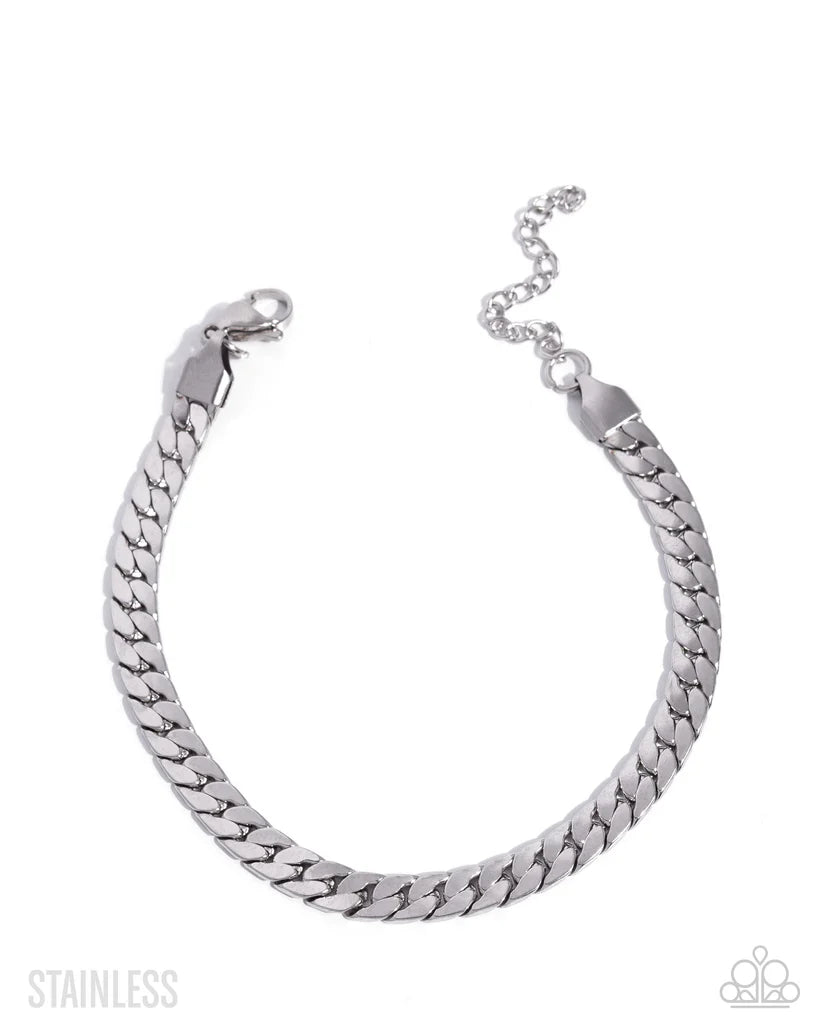 Featuring stainless steel, a thick strand of silver curb link chain is wrapped around the wrist for a cutting-edge, classic look. Features an adjustable clasp closure.